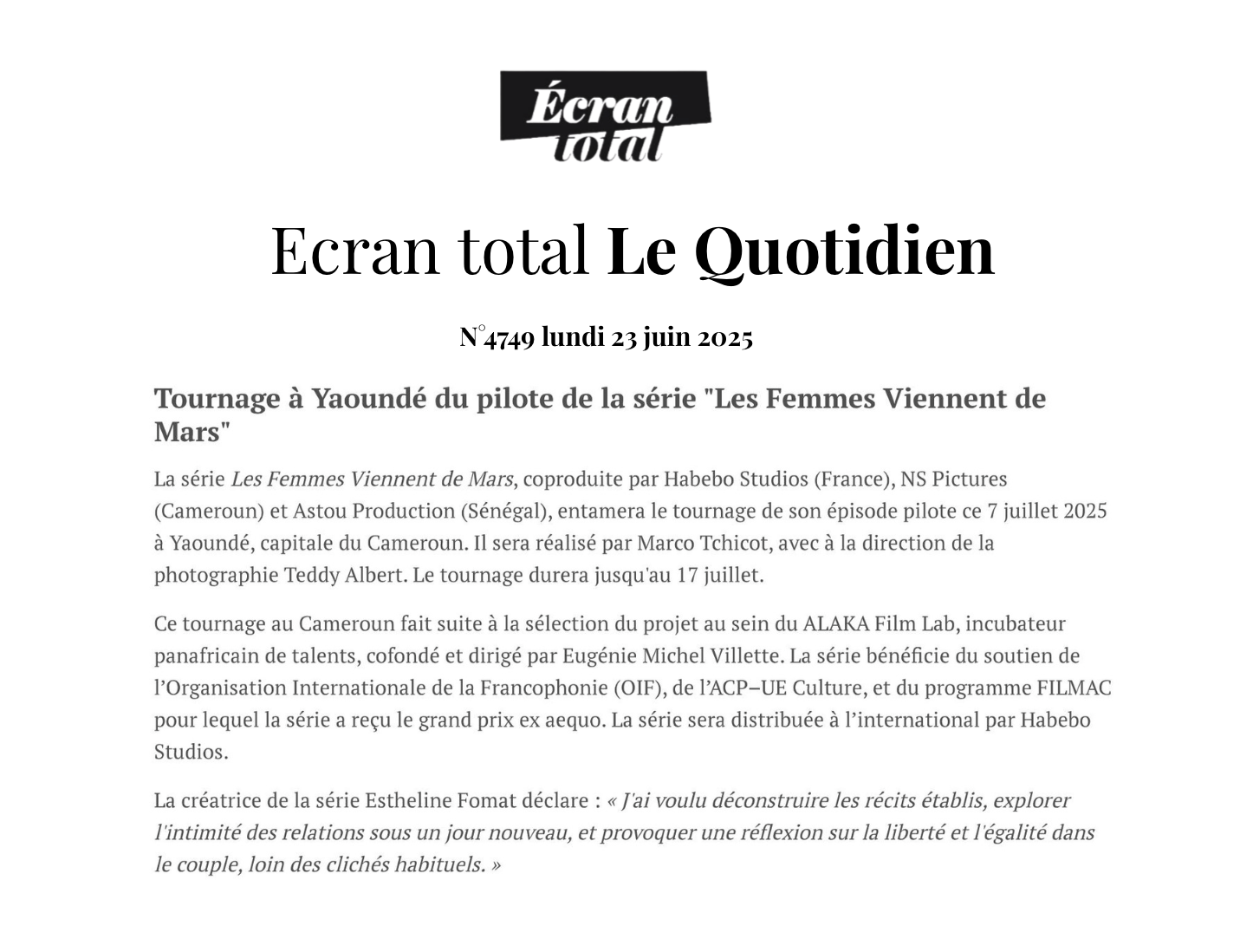 The pilot episode of Women are from Mars has attracted media attention in France and Cameroon. Below is a selection of press articles covering the screenings and the project.